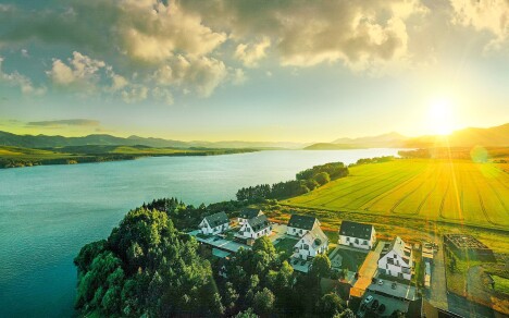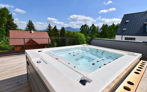 Břeh Liptovské Mary jen 400 m od Tatralandie v Komplexu Maladinovo se snídaní a privátní vířivkou + slevy